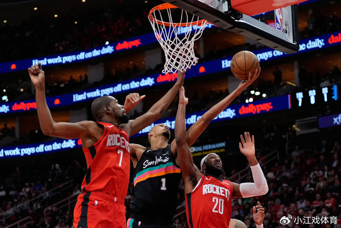 最后4分钟,科内特禁区得分,杜兰特助攻小贾巴里轰进三分,福克斯中投得分,随后马刺频频打铁,谢泼德关键盖帽,小贾巴里中投2分,申京勾手得分,12.5秒谢泼德罚球杀到比赛,最终火箭111-106捍卫主场。