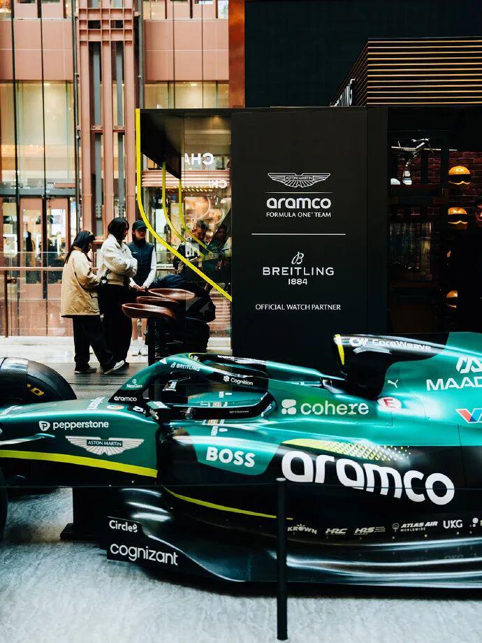在上海南京东路的新世界新丸中心一层中庭,打造了一处名为 “F1®驭时赛道” 的限时概念空间,从3月11日持续到3月22日,让大家都能够进入这次品牌与阿斯顿·马丁及 Aston Martin Aramco Formula One™ Team 的合作“零距离现场”。