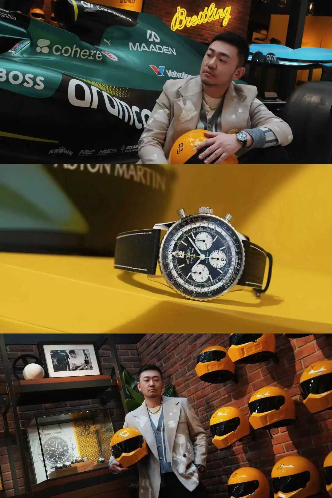 这还不是最引起尖叫声的,当天品牌代言人黄景瑜也来到现场,将这场活动的气氛推至高潮。他现场佩戴的,也正是这次合作推出的表款——航空计时B01计时码表43 Aston Martin Aramco Formula One™ Team限量版。