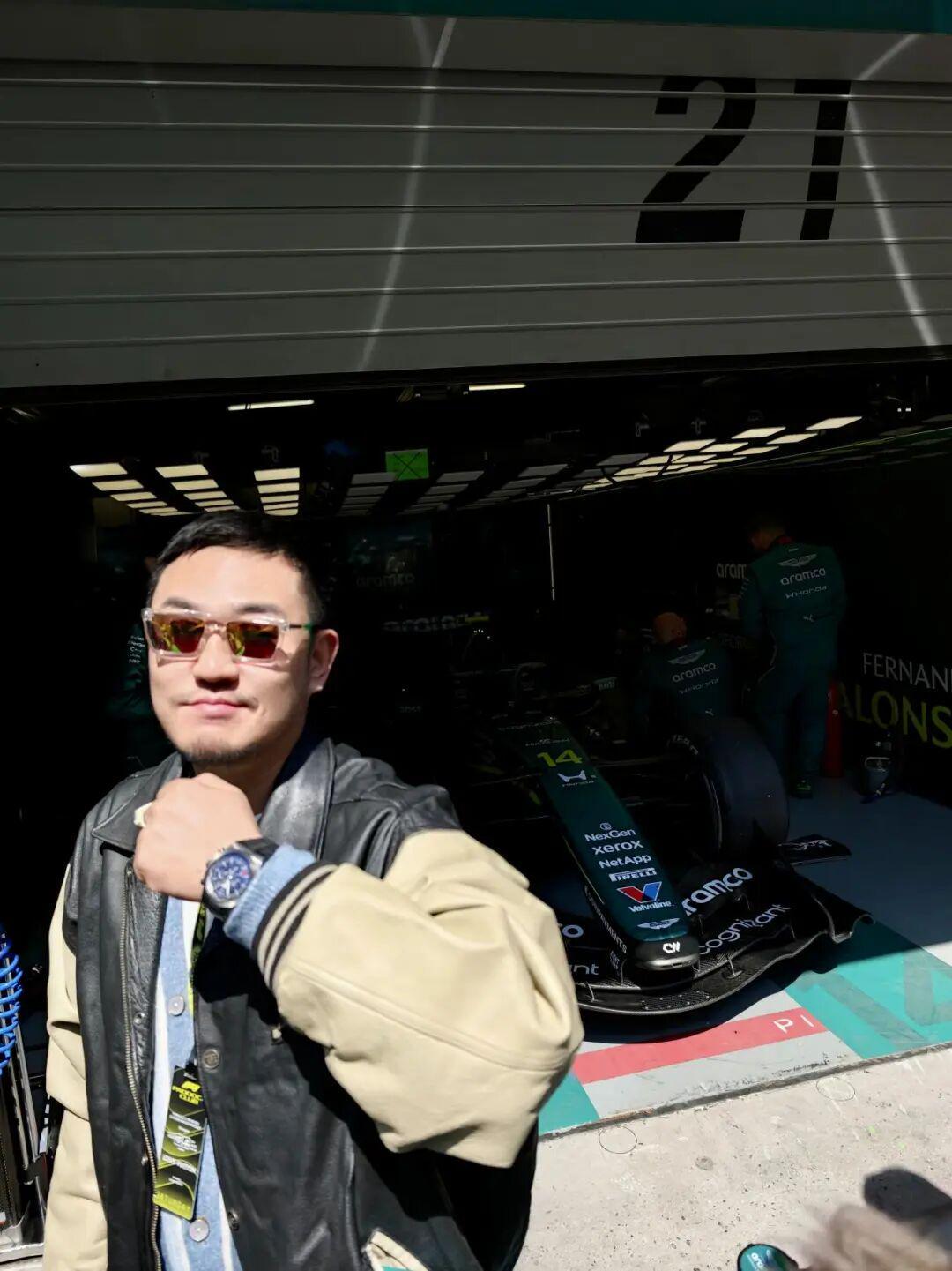 除了打卡了这个限时空间外,这次磅礴我也是受百年灵邀请,在 F1 Paddock Club 现场观赛。
