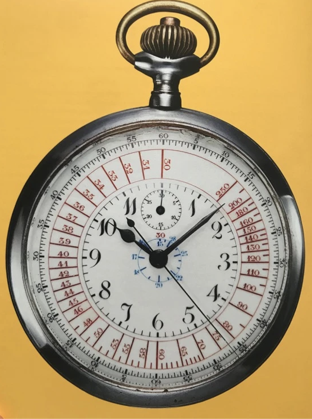 这枚计时怀表可以测量高达250英里或公里每小时的速度,在那个汽车还远没有今天这么普及的年代,这几乎是一项相当超前的技术。甚至因为精度太高,它还被瑞士警方用来记录车辆超速,开出了历史上最早的一批罚单,真的是鼻祖级的存在。