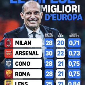 【📊】 🔴⚫️ 米兰在28场联赛中仅失20球、平均每场失0.71球,在欧洲足球五大联赛中拥有最好的防守纪录。🧱#semp...